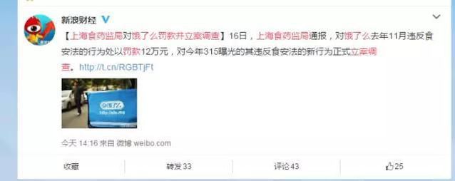 還拿倒運(yùn)悲催的餓了么為例,新浪新聞對(duì)此進(jìn)行了查詢(xún),發(fā)現(xiàn)有七成網(wǎng)友反應(yīng),會(huì)影響對(duì)餓了么的使用,并且該公司還被處罰了12萬(wàn)元。